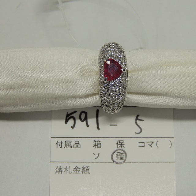 リング ルビー ダイヤ 非加熱 K18WG 6.90g 鑑 石目:R1.17 D1.59