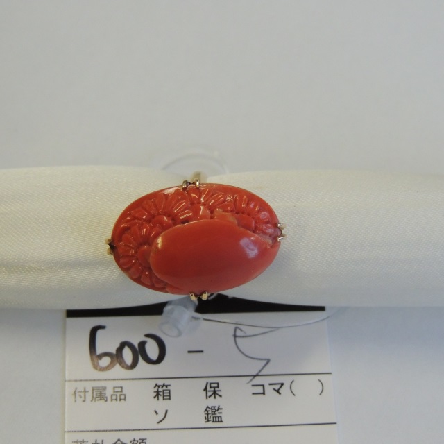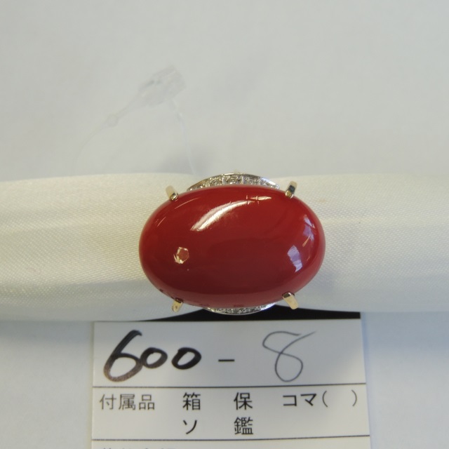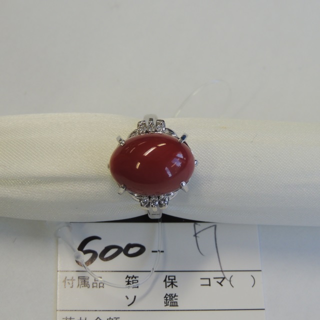 リング サンゴ 14.6mm ダイヤ k18/Pt900 12.20g 石目:0.30