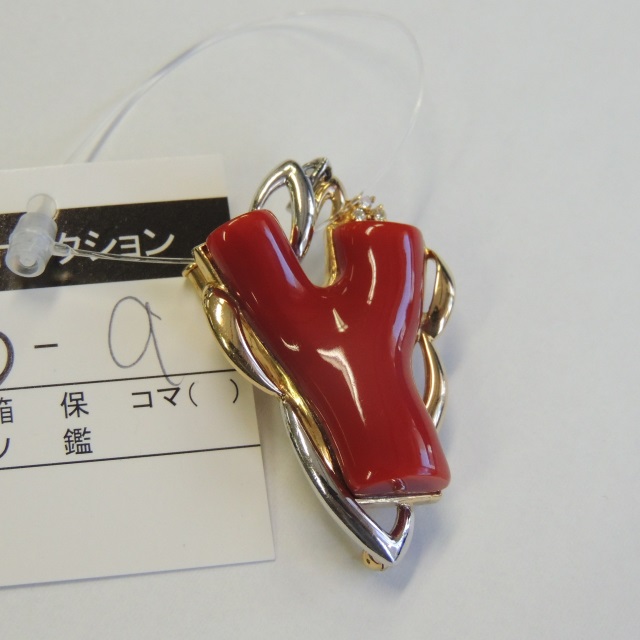 ペン・ブローチ サンゴ ダイヤ K18/Pt900 17.00g 石目:0.066