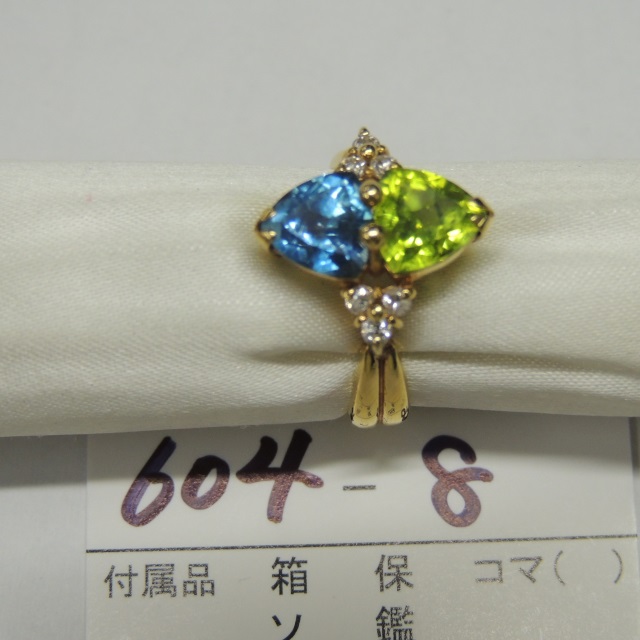 リング ブルートパーズ ペリドット ダイヤ K18 4.40g 石目:FD0.18
