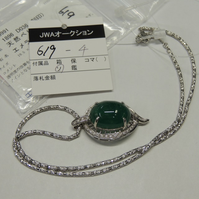 ペン・ネック エメラルド ダイヤ Pt850/K18WG 20.60g 中ソ 石目:18.96 D0.36