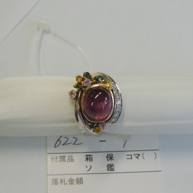 リング レッドトルマリン ダイヤ Pt900 8.60g 中ソ 石目:4.57 0.60