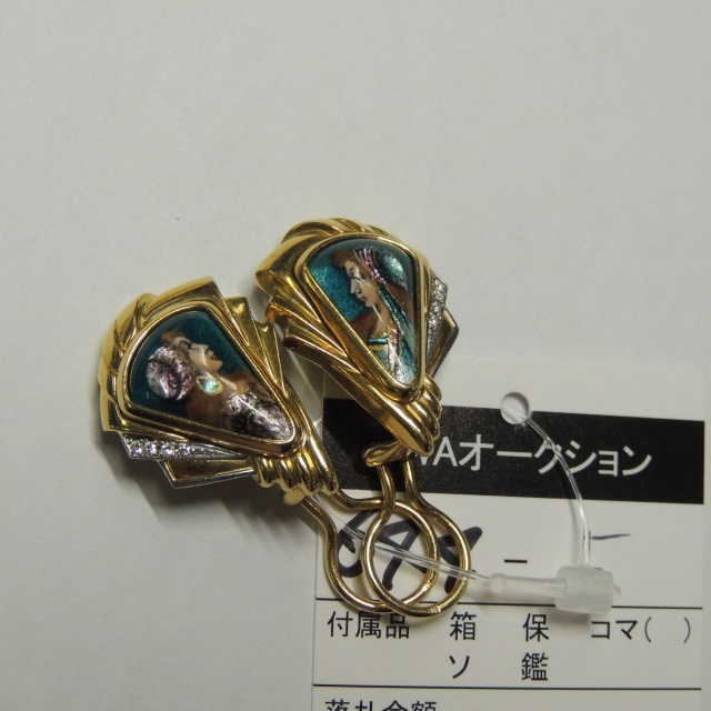 イヤリング 梶光男 エマーユ ミニアチュール ダイヤ K18/Pt900 17.10g 箱 証明