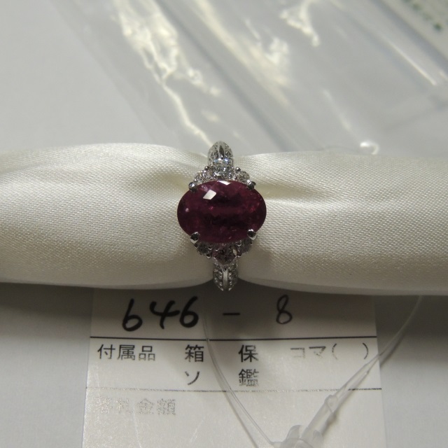 リング ピンクトルマリン ダイヤ Pt900 7.00g 中ソ 石目:3.64 D064