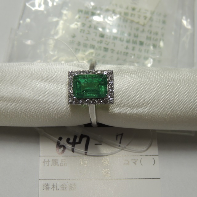 リング エメラルド ダイヤ Pt900 6.40g 中ソ 石目:E1.68 D0.31