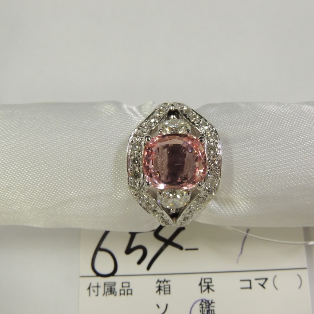 リング パパラチアサファイア Pt900 8.90g 鑑 石目:S3.140 D0.91 D1.259