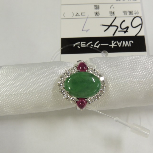 リング ヒスイ Pt900 8.50g 石目:J6.07 D0.35
