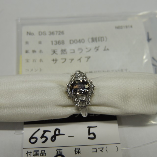 リング サファイア 通常 Pt900 5.20g 中ソ 石目:S1.368 FD0.40