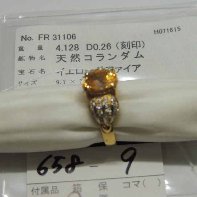 リング イエローサファイア 通常 K18 7.60g 中ソ 石目:YS4.128 FD0.26