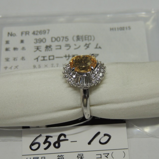 リング イエローサファイア 通常 Pt900 9.00g 中ソ 石目:YS3.90 FD0.75