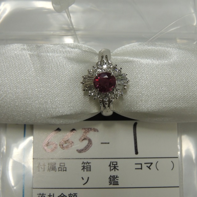 リング ルビー Pt900 4.70g GRJソ 石目:R0.74 FD0.44