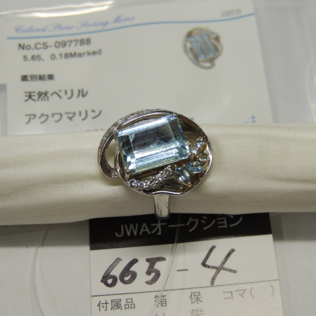 リング アクアマリン Pt900/K18 21.10g GRJソ 石目:AQ5.65 FD0.18