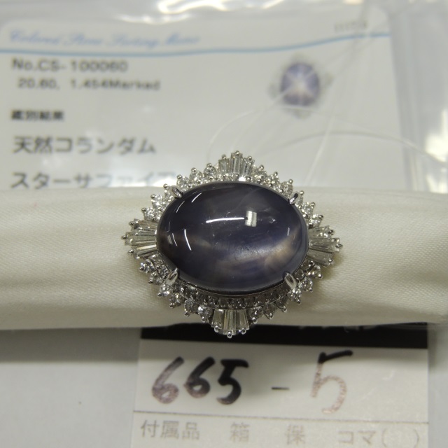 リング スターサファイア Pt900 17.00g GRJソ 石目:SS20.60 FD1.454