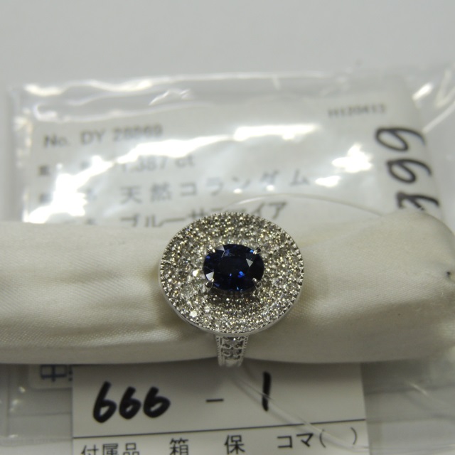 リング サファイア ダイヤ Pt900 11.60g 中ソ 石目:S1.387 D0.76