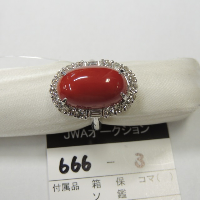リング サンゴ ダイヤ Pt900 14.60g 石目:S12.56 D1.56