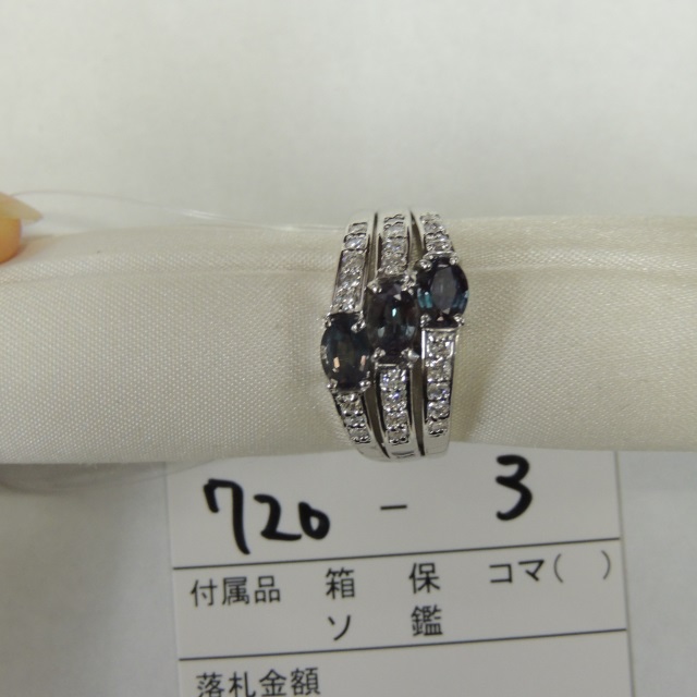 リング アレキサンドライト ダイヤ Pt900 7.30g 鑑 石目:1.00 D0.33