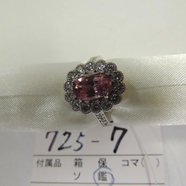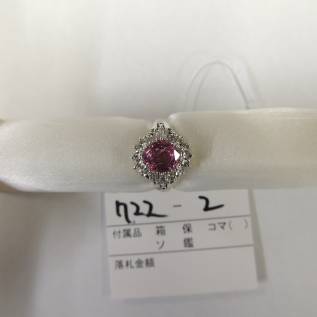 リング ピンクサファイア ダイヤ Pt900 7.70g 鑑 石目:2.01 D0.37