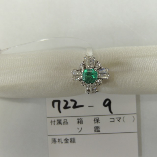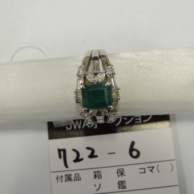 リング エメラルド ダイヤ Pt900 7.60g 鑑 石目:E0.76 D0.37