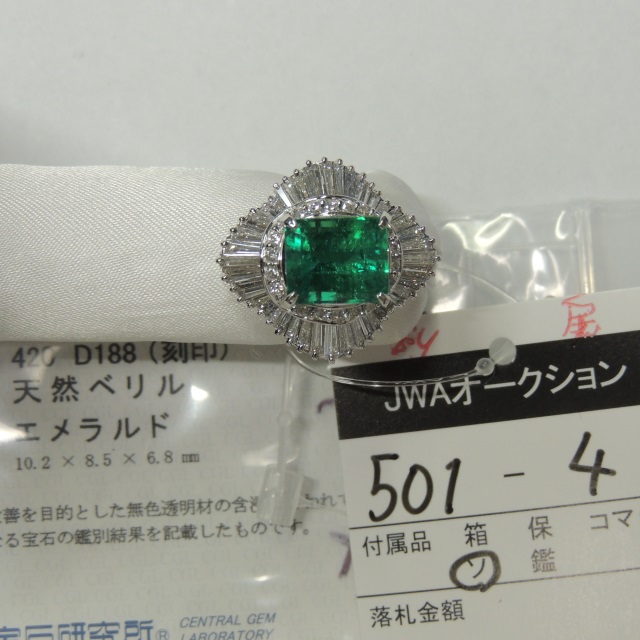 リング エメラルド Pt900 17.30g 中鑑 石目:E3.23 FD1.67