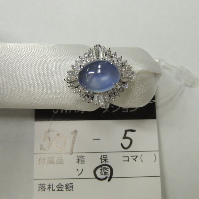 リング スターサファイア ダイヤ Pt900 12.00g 中鑑 石目:S5.85 D1.01
