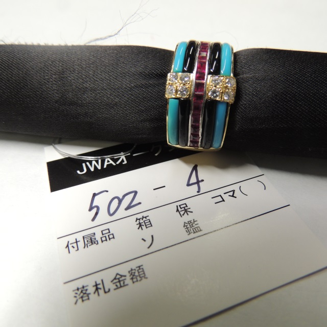 リング トルコ石 オニキス ダイヤ K18/Pt900 10.20g 石目:FD0.24