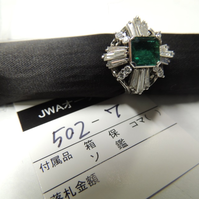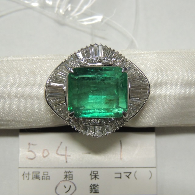 リング エメラルド ダイヤ Pt900 17.10g 石目:3.50 1.12