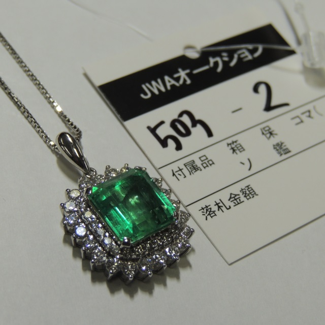 ペン・ネック エメラルド ダイヤ Pt900/Pt850 13.40g 石目:5.386 1.51