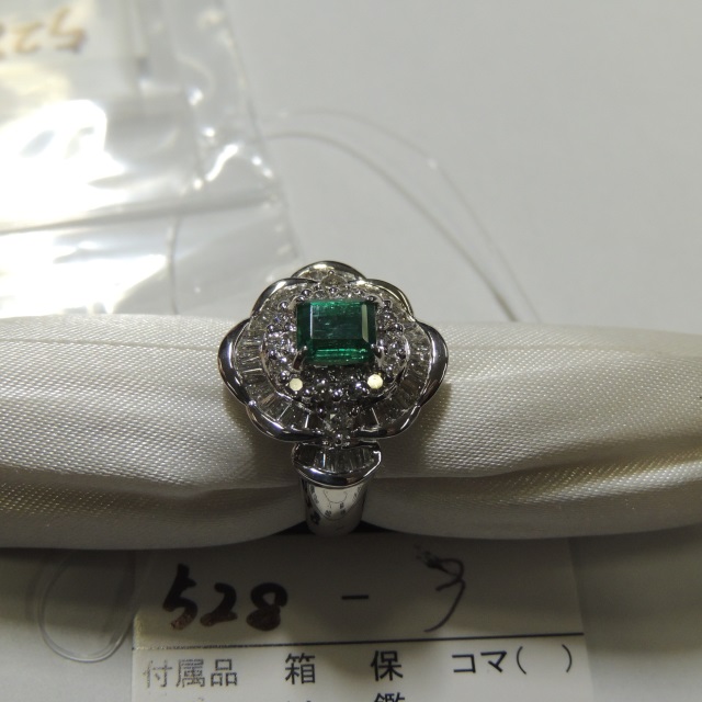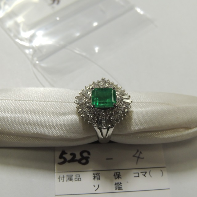 リング エメラルド Pt900 13.50g 中ソ 石目:4.66 D1.20