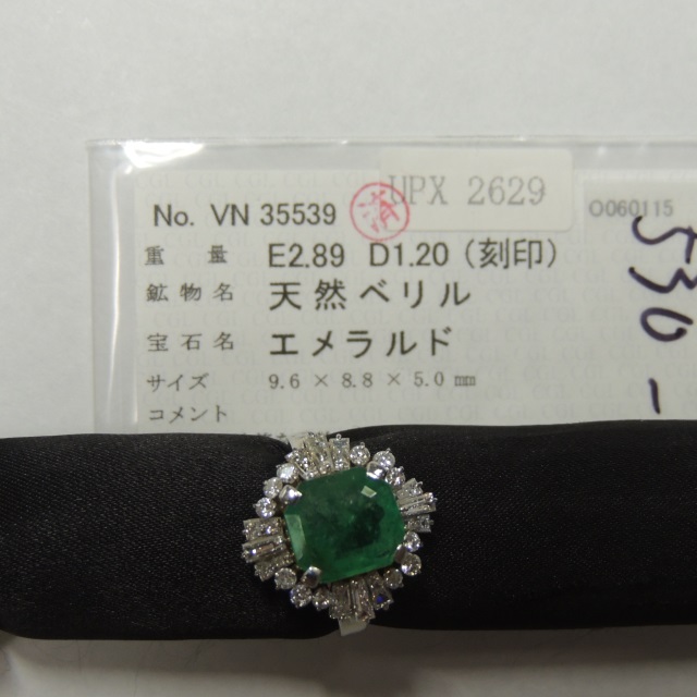 リング エメラルド Pt850 7.70g 中鑑 中ソ 石目:E2.89 FD1.20