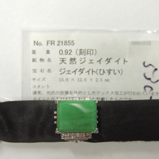 リング ヒスイ Pm900 13.40g 中ソ 石目:FD0.92