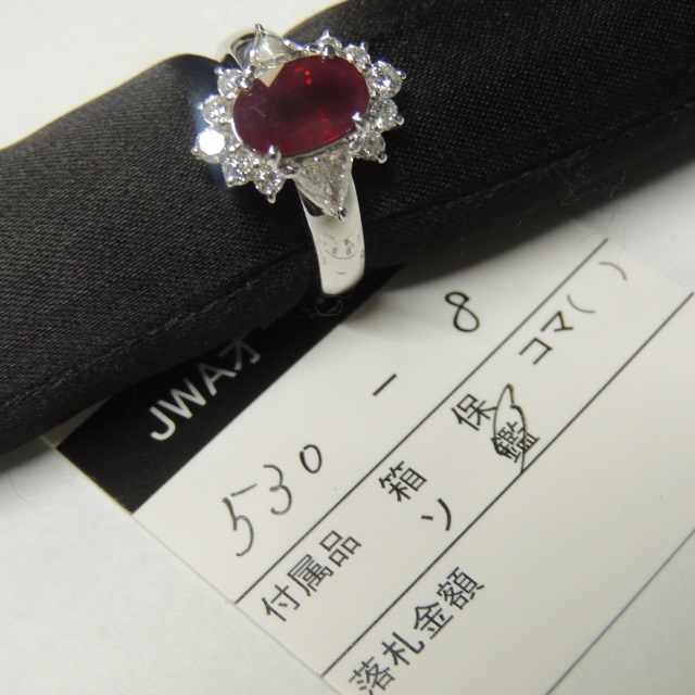 リング ルビー ピジョンブラッド ビルマ産 Pt900 9.00g 鑑 石目:R2.136 FD0.70
