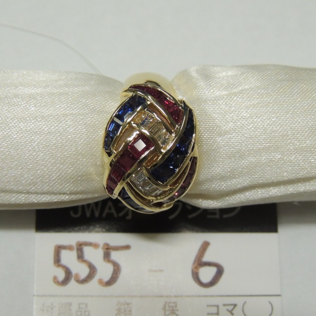 リング ルビー サファイア ダイヤ K18 9.60g 石目:R1.76 S1.59 D0.40
