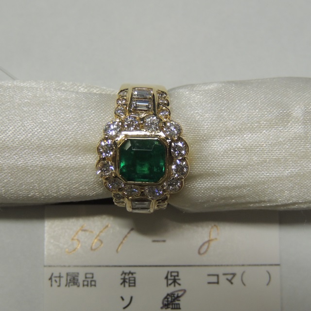 リング エメラルド ダイヤ K18 11.70g 中鑑 石目:E1.59 FD1.24