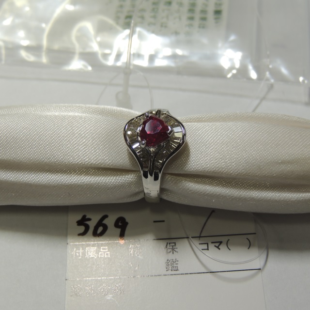 リング ルビー Pt900 26.50g 中ソ 石目:3.411 D2.65