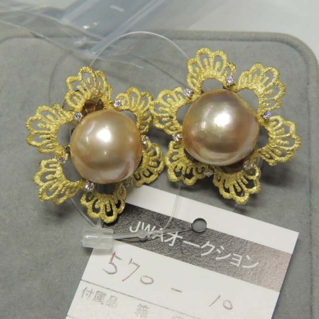 イヤリング 松沢安行 パール P15mm 重量ゴム抜き 着色処理 K18 24.10g 中ソ デザイン画 石目:D0.12 D0.12