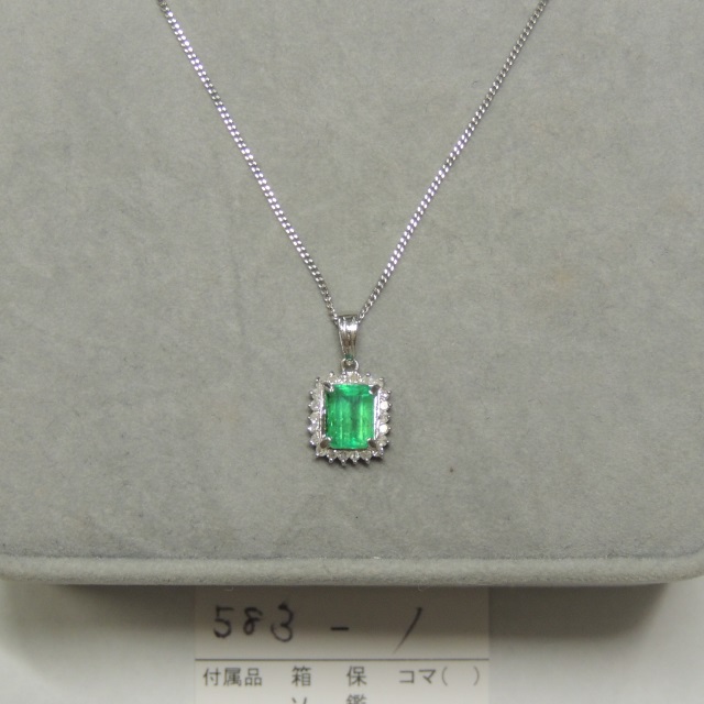 ペン・ネック エメラルド Pt900/Pt850 4.40g 石目:E1.21 D0.18