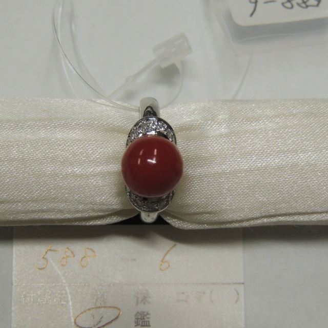 リング サンゴ 9.7mm Pt900 8.00g 中ソ 石目:FD0.20