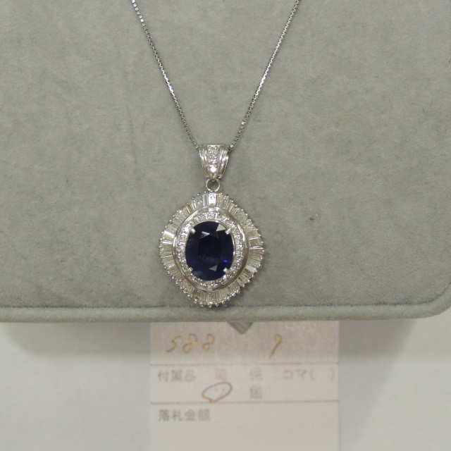ペン・ネック サファイア Pt900/Pt850 10.00g GRJソ 石目:S2.68 FD1.00