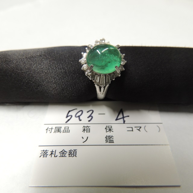 リング カボションエメラルド ダイヤ Pt900 7.30g GRJソ 石目:E2.67 FD0.51