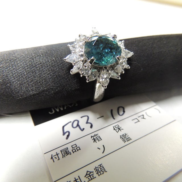 リング パライバトルマリン ダイヤ Pt900 12.00g GRJソ 石目:TL3.11 FD1.81