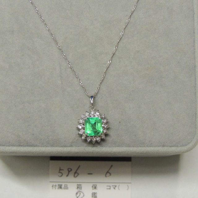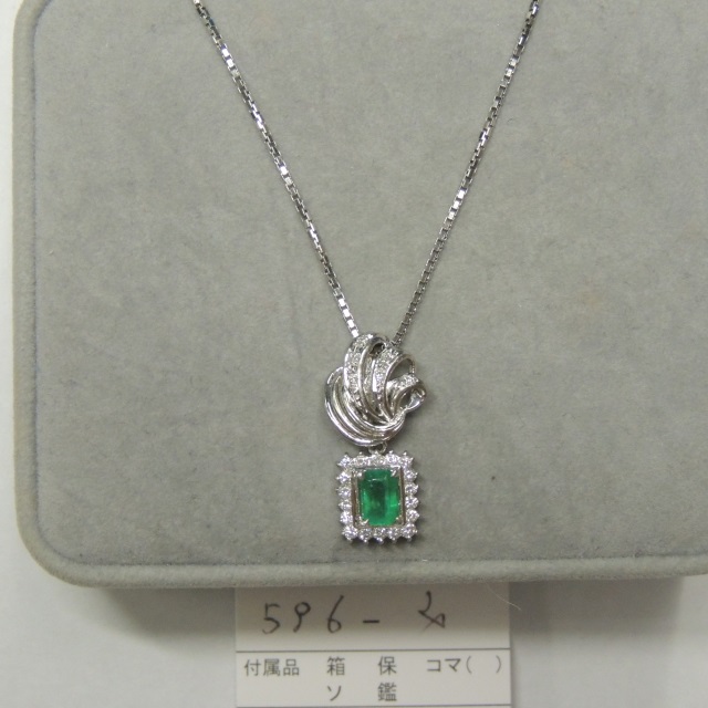 ペン・ネック エメラルド Pt900/Pt850 3.70g 中ソ 石目:E1.85 D0.10