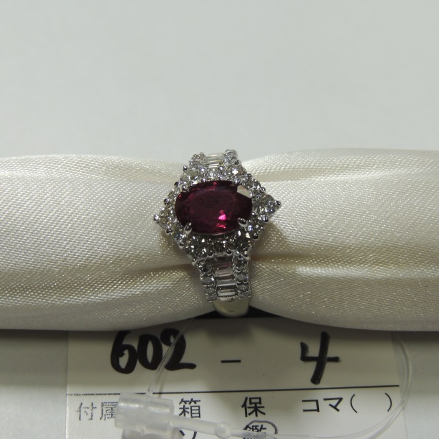 リング ルビー ビルマ ダイヤ Pt900 10.20g 鑑 石目:3.14 0.81