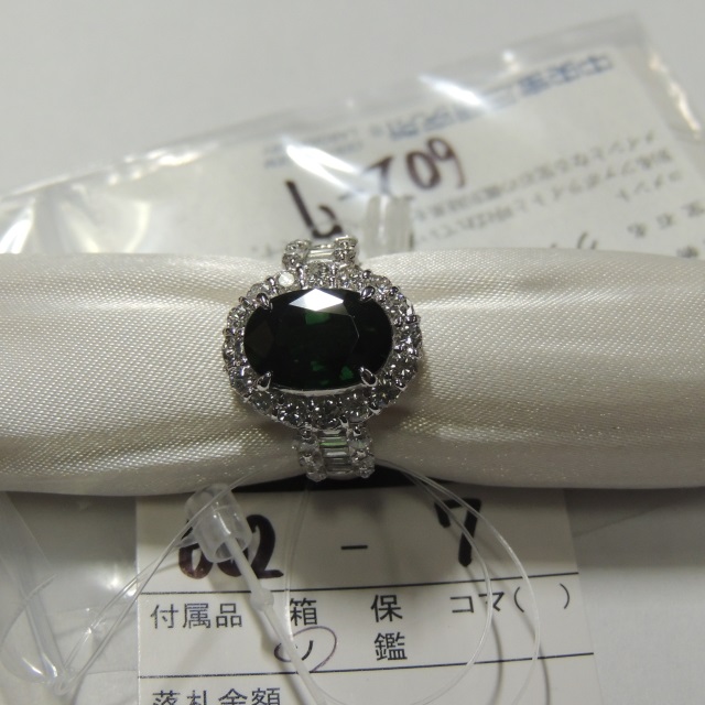 リング グリーングロッシュラーガーネット ダイヤ Pt900 9.60g 中ソ 石目:4.57 1.5