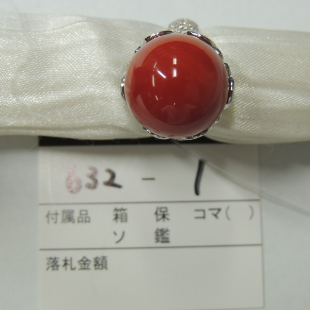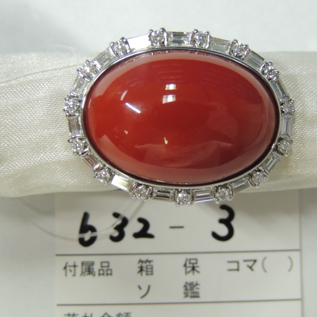 リング サンゴ ダイヤ Pt900 22.70g 箱 石目:C36.80 D1.00