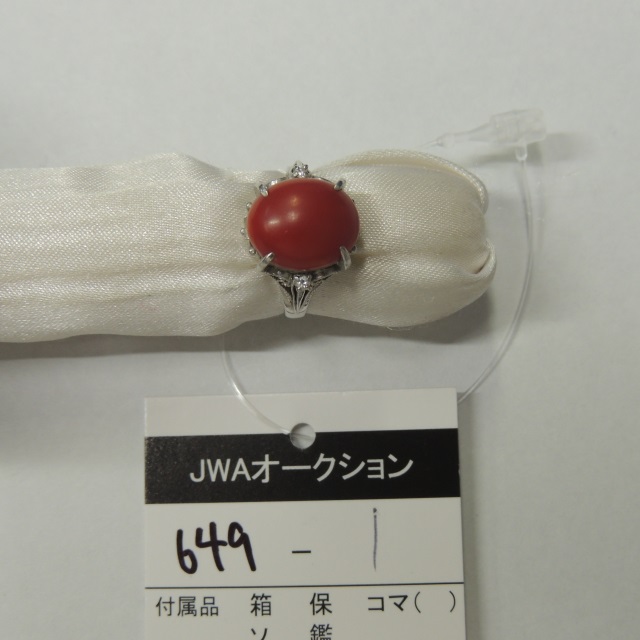 リング サンゴ ダイヤ Pt900 5.30g 石目:D0.03