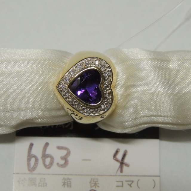 リング 合成アメジスト ダイヤ K14 6.10g 鑑