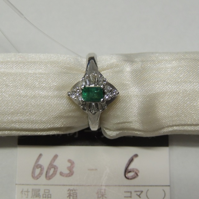 リング エメラルド ダイヤ Pm900 5.90g 鑑 石目:E0.33 D0.35