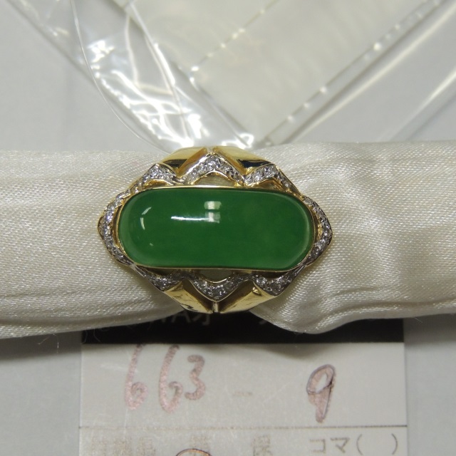 リング ヒスイ ダイヤ 有食含浸 18K 9.40g GRJソ