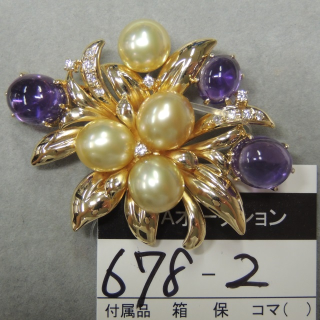 田崎 ゴールド真珠ブローチ K18YG 22.20g 石目:D0.22