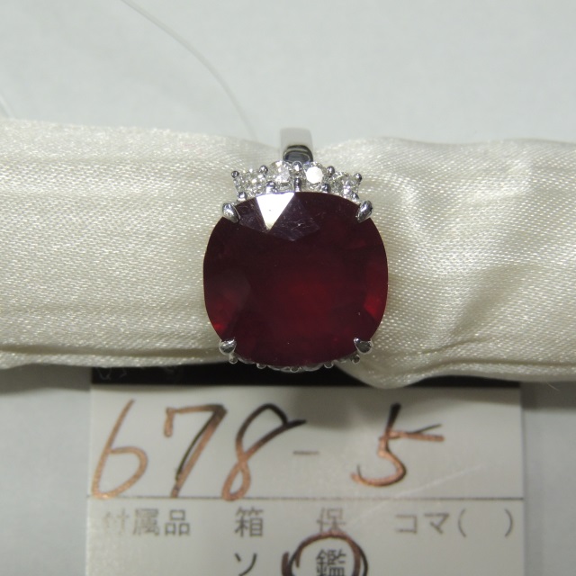 リング ルビー(クッションカット)含浸 K18WG 9.30g 鑑 石目:R12.53 D0.51